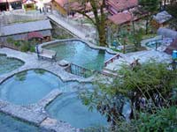 In No.2 Campsite, hot springs gush out from rock cracks year round, with a daily flow of 8,900 tons. Water temperature at the mouth can reach as high as 90 °C. The hot springs gush into a small pond, from where they drop down along a cliff to form a waterfall of eight meters wide and 10 meters high. The spring water is believed to be effective in curing diabetes, neuralgia, arthritis and gastroenteritis. Nearby, a swimming pool has been built in the open air for tourists’ convenience.