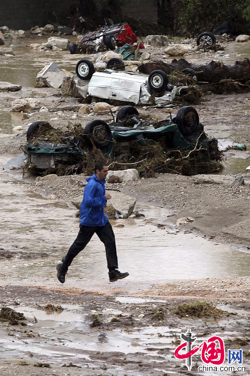 Heavy floods caused by torrential rain affected the province Malaga in southern Spain on Sept. 28. More than 5,000 people were forced to evacuate. [China.com.cn]