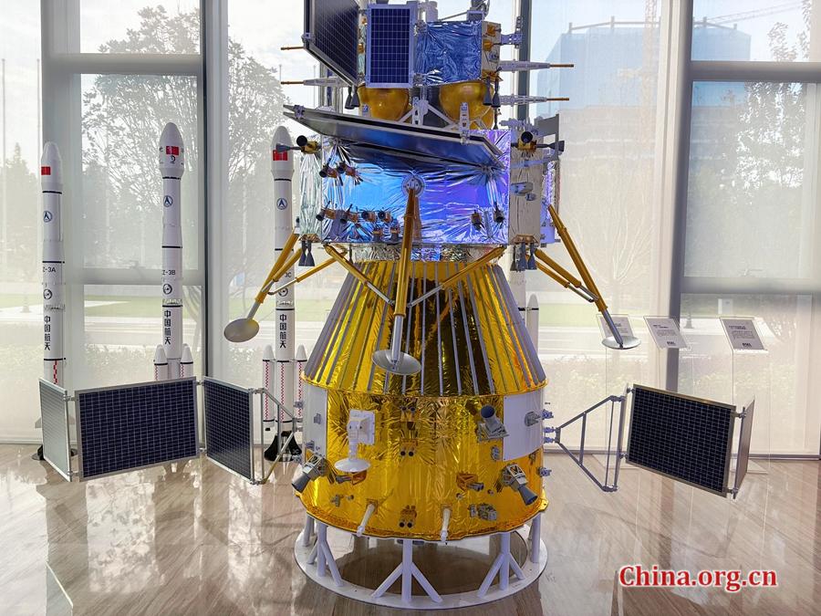 A model of Chang'e-6 spacecraft displayed at the show room of the Deep Space Exploration Lab in Hefei, central China's Anhui province, Nov. 10, 2025. [Photo by Wang Yiming/China.org.cn]