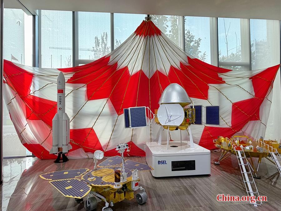 A model of Tianwen-1 spacecraft displayed at the show room of the Deep Space Exploration Lab in Hefei, central China's Anhui province, Nov. 10, 2025. [Photo by Wang Yiming/China.org.cn]
