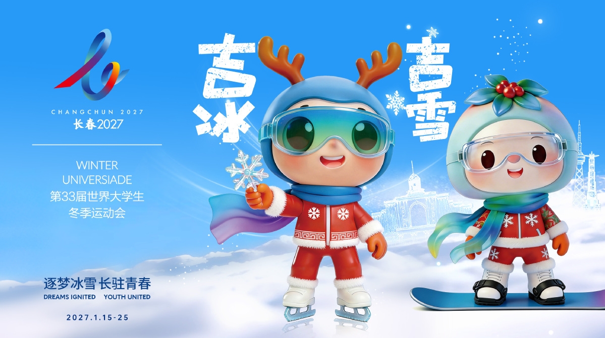 Xinmin Avenue, a historic cultural street in Changchun city, Jilin province became the center of attention on Saturday morning, as the Changchun Museum of History and Culture — the main venue for a countdown celebration ceremony marking 300 days to the start of the Changchun 2027 Winter Universiade — unveiled the official emblem, slogan, and mascots for the event scheduled to open in Changchun on Jan 15 next year.