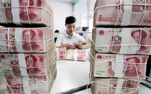 Shrinking Loan: A bank worker counts renminbi at the Agriculture Bank of China, Tancheng Branch, in the city of Linyi, east China's Shandong Province, on June 13, 2011. China's newly added loans in May came to 551.6 billion yuan ($87 billion), over 20 percent less than the same period last year [Xinhua] |