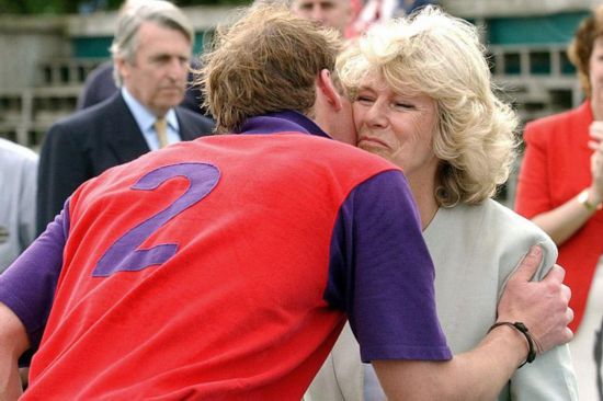2005: Prince William kisses Camilla at a polo match
