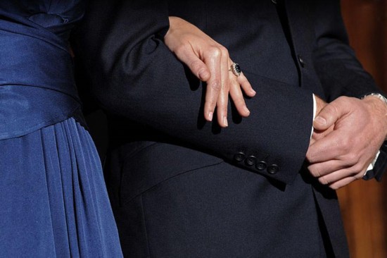 Princess Diana's ring is seen on Catherine's ring finger.
