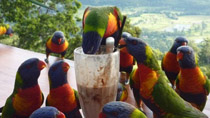Parrots fight for tasty milkshake