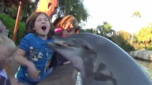An 8-year-old girl named Jillian Thomas was bitten by a dolphin at SeaWorld Orlando in Florida recently, and the incident was captured on video by her family. [Source: chinanews.com]