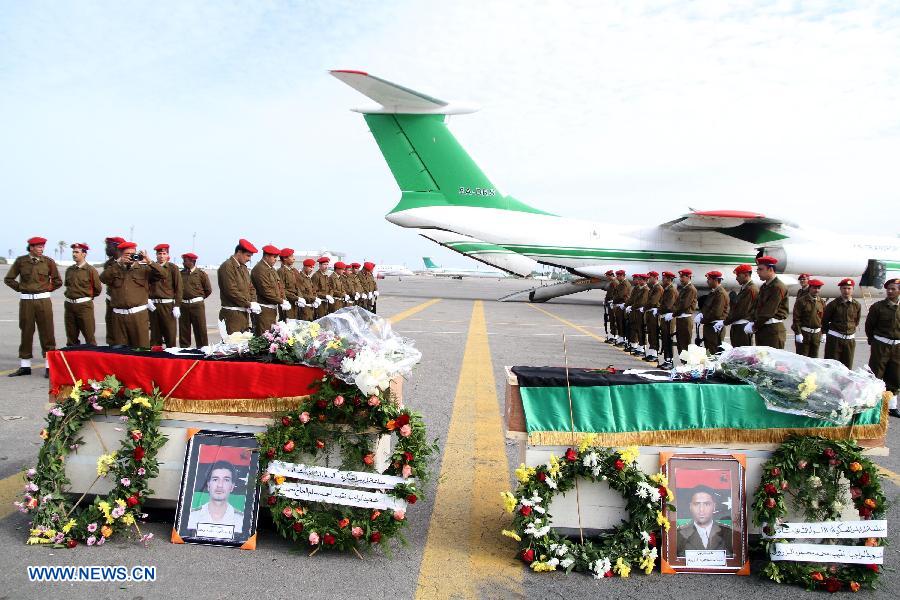 A memorial service is held in Dahra district of central Bani Walid, about 180km southeast of Tripoli, Libya, Dec. 16, 2012. Three members of the Libyan national army were killed and nine others wounded in an armed attack Saturday night in the city of Bani Walid, an army spokesman told Xinhua. [Xinhua]