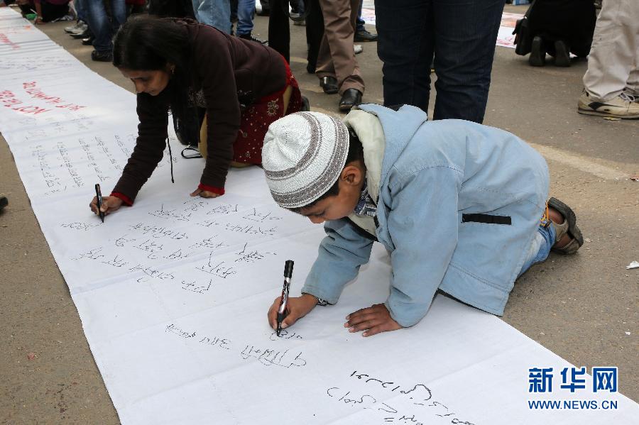 Indians mourn the death of the 23-year-old gang rape victim in New Delhi, India, Dec. 30, 2012. The body of the victim was cremated in New Delhi Sunday morning, hours after it was flown from Singapore, said an Indian Home Ministry spokesman. [Xinhua]