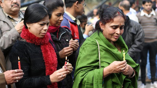 Indian police stand guard at the place where Indians mourn the death of the 23-year-old gang rape victim in New Delhi, India, Dec. 30, 2012. The body of the victim was cremated in New Delhi Sunday morning, hours after it was flown from Singapore, said an Indian Home Ministry spokesman. [Xinhua] |
