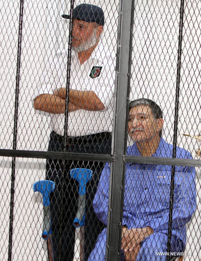 The former foreign intelligence chief, the first of Moamer Kadhafi's top officials to face justice, is accused of ordering security forces to use live ammunition against demonstrators last year. [Photo/Xinhua]