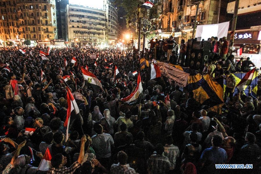 Anti-Morsi protesters take part in a demonstration at the Tahrir Square in downtown Cairo on June 26, 2013, only days before the first anniversary of the rule of Egyptian President Mohamed Morsi. [Photo/Xinhua]