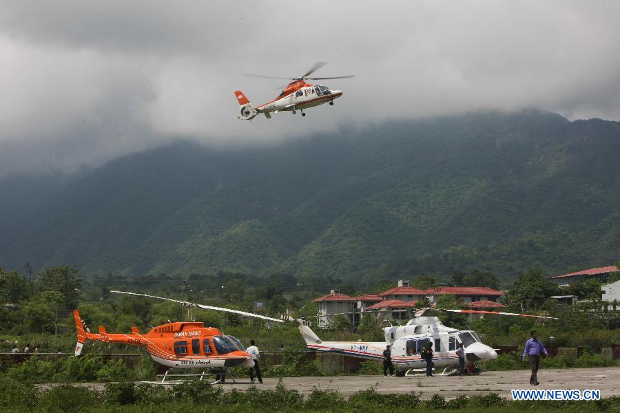 There are still an estimated 7000 people stranded in the flood while authorities use military planes and helicopters in the rescue in flood-ravaged northern India. [Photo/Xinhua]