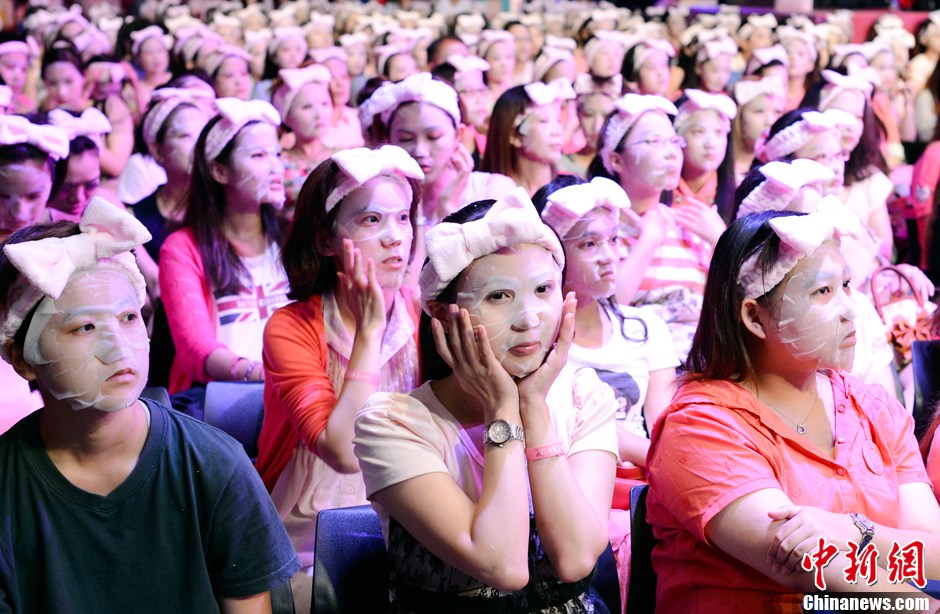 Participants get ready to apply facial masks in Taipei July 28, 2013. A total of 1,213 people broke the Guinness World Record by applying facial masks for 10 minutes at the same time on Sunday. [Photo/Chinanews.com]