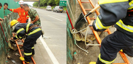 A crocodile was found on a busy highway in Beihai City in Guangxi Zhuang Autonomous Region on July 29.[Photo/gxnews.com.cn]