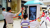 7月30日,江苏无锡,顾客在滨湖万达广场内的“体感试衣镜”前“换装”。[中国网图片库 朱吉鹏 摄]