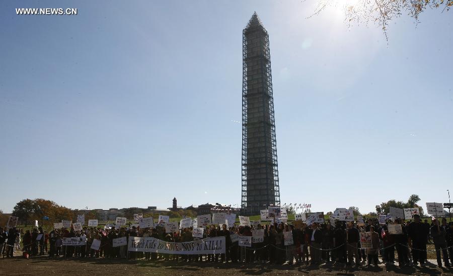 Chinese protesters gather during a protest against the rhetoric of racial discrimination of the American Broadcasting Company (ABC) in Washington D.C., Nov. 9, 2013. [Xinhua]