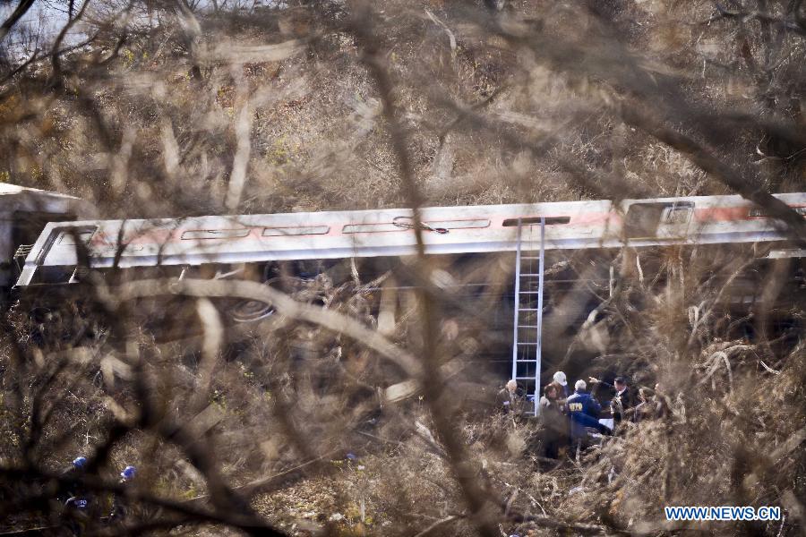 At least four people died and 63 injured in the derailment happened before 7:30 a.m. Sunday morning near the Spuyten-Dryvil Station. [Photo/Xinhua]