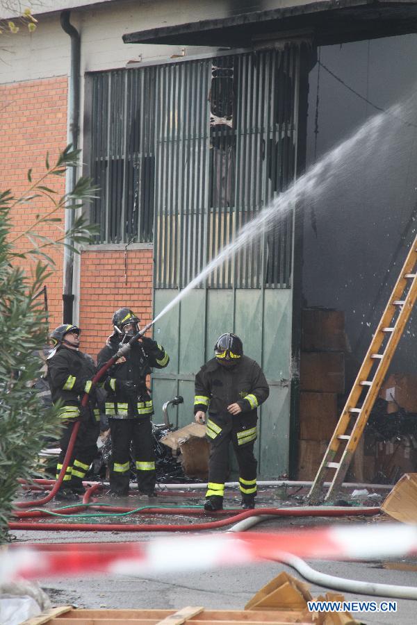 A fire at a factory in central Italy early Sunday killed at least seven Chinese workers and seriously injured two others, local media reported. The fire occurred at a garment plant in the suburbs of the city of Prato, just north of Florence in central Italy, where there is a large concentration of Chinese businesses which employ at least 30,000 workers, according to Rai state television. [Photo/Xinhua]