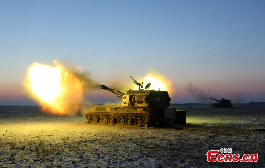 Nearly 3,000 soldiers of People's Liberation Army participate in a combat drill at Horqin Grassland in north China's Inner Mongolia autonomous region on December 11, 2013. [Photo/CNS]