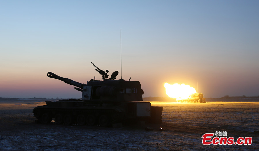 Nearly 3,000 soldiers of People's Liberation Army participate in a combat drill at Horqin Grassland in north China's Inner Mongolia autonomous region on December 11, 2013. [Photo/CNS]