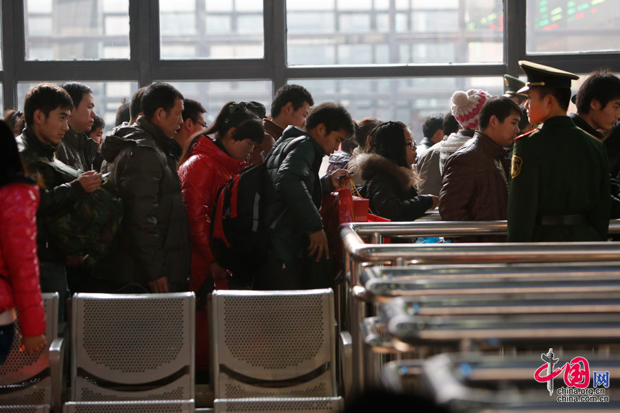 Passengers pass through a check-in path at Beijing West Railway Station on Jan. 16. [Photo by Yang Jia/China.org.cn]