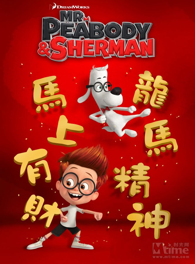 A poster of the 3D animated film "Mr. Peabody & Sherman" celebrating the 2014 Chinese Lunar New Year [Photo: mtime.com]