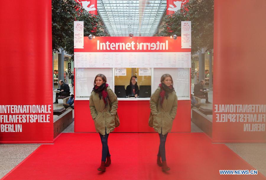 A pedestrian passes by a ticket box of the upcoming Berlinale Film Festival at a shopping mall of Potsdamer Platz in Berlin, Germany, on Feb. 5, 2014. The 64th Berlinale Film Festival will take place from Feb. 6 to Feb. 16 at Potsdamer Platz in Berlin, presenting a total of 409 films, with 20 films competing for the Golden Bear. [Xinhua]
