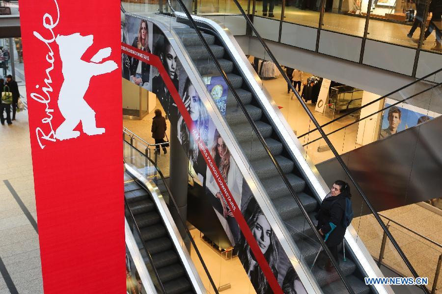 A pedestrian passes by a banner of the upcoming Berlinale Film Festival at a shopping mall of Potsdamer Platz in Berlin, Germany, on Feb. 5, 2014. The 64th Berlinale Film Festival will take place from Feb. 6 to Feb. 16 at Potsdamer Platz in Berlin, presenting a total of 409 films, with 20 films competing for the Golden Bear. [Xinhua] |