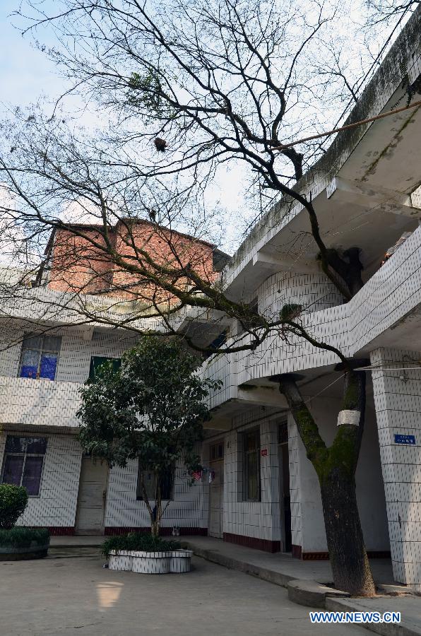 Photo taken on March 10, 2014 shows an old tree growing in the building of a hospital at Beishan County of Tongchuan District in Dazhou City, southwest China's Sichuan Province. The spectacle appeared here as a hospital had to be built where three old trees grow. Enough room were left for the growth of old trees in order to protect them during the construction of the buildings, said the director of the hospital. [Xinhua]