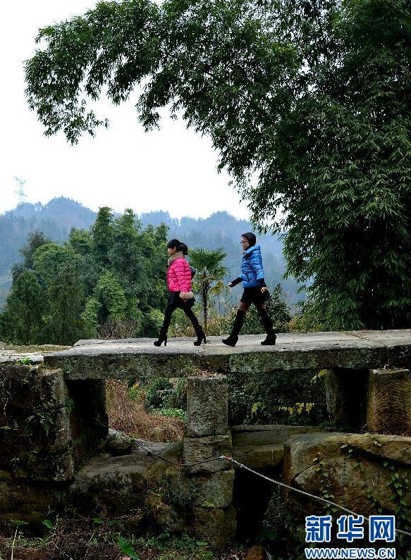 Two visitors at the Tangya Tusi Site, located in Xianfeng County of Hubei Province, on Dec.14, 2013. [Photo/Xinhua]
