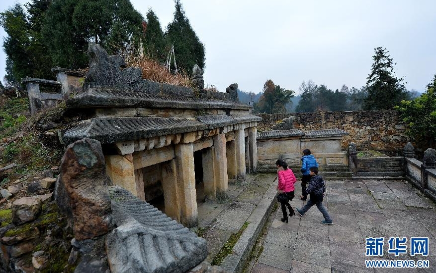 Tourists pay a visit to the burial grounds at the Tangya Tusi Site, located in Xianfeng County of Hubei Province, on Dec.14, 2013. [Photo/Xinhua]
