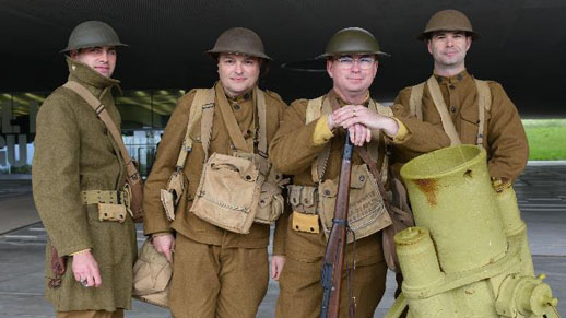 A participant in costume of World War I army of French Foreign Legion is seen at the World War I Museum in Meaux, Paris, France, on April 27, 2014. Military enthusiasts attended a reenactment to commemorate the 100th anniversary of the World War I. [Xinhua]