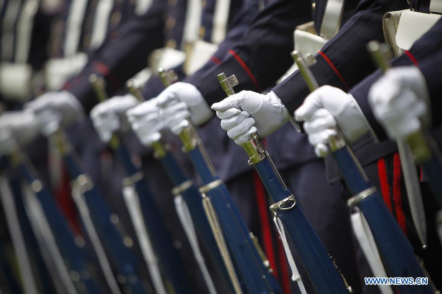 Cadets take part in the celebration of the Soldier Day and the commemoration of the 190 anniversary of the founding of the Armed Forces, in San Salvador, capital of El Salvador, on May 7, 2014. [Xinhua]
