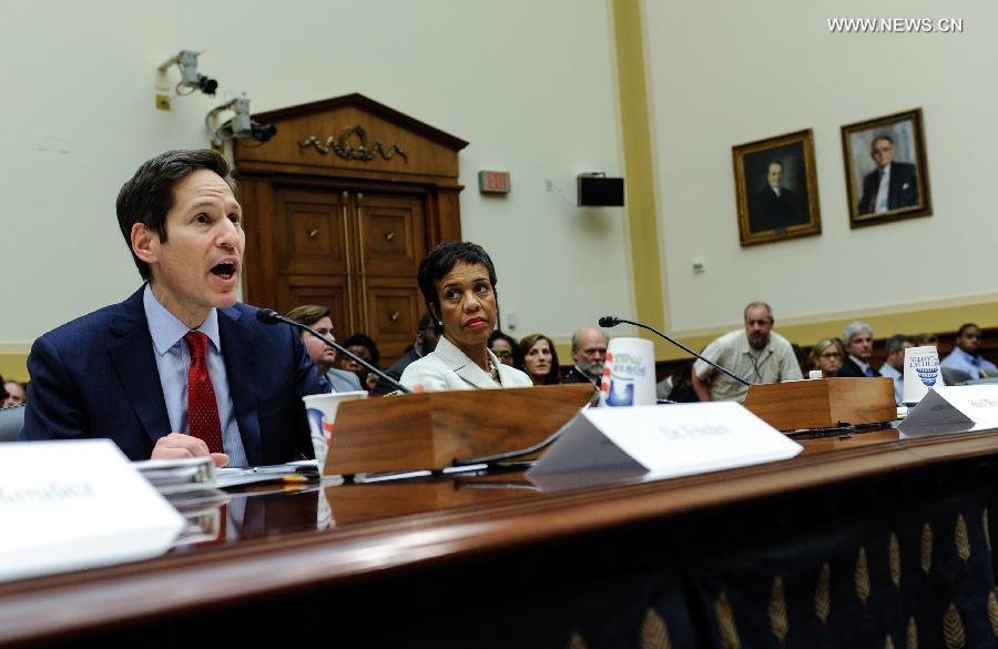 Tom Frieden (L), director of the U.S. Centers for Disease Control and Prevention (CDC), speaks during a hearing on combating the Ebola threat, on Capitol Hill in Washington D.C., capital of the United States, Aug. 7, 2014. CDC Director Tom Frieden said Thursday he has activated the level of the agency's response to the west African Ebola outbreak to its highest alert status.[Xinhua]