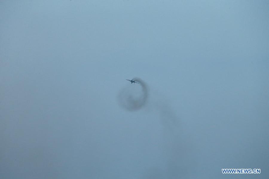 Photo provided on Oct. 19, 2014 by Korean Central News Agency (KCNA) shows the performance conducted by fighter pilots of the Korea People's Army Air and Anti-Air Force Units 1017 and 458, honored with the title of O Jung Hup-led 7th Regiment, guided by top leader of the Democratic People's Republic of Korea (DPRK) Kim Jong Un. [Photo/Xinhua]