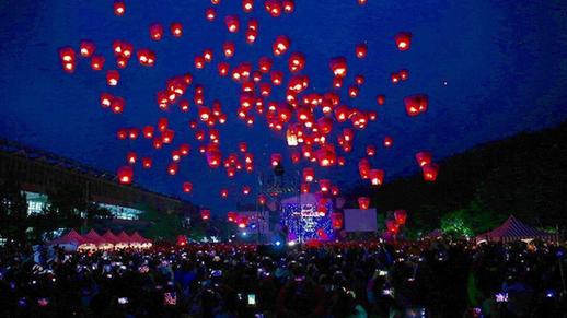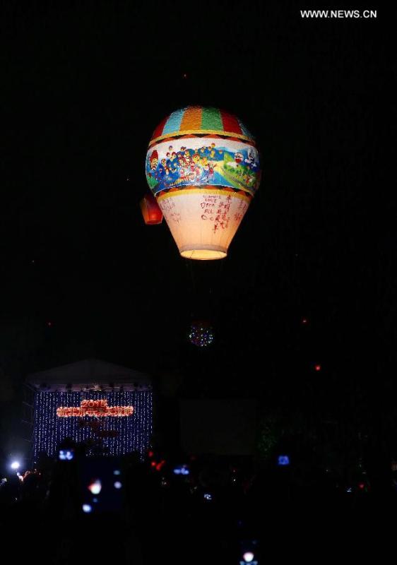 A large sky lantern floats up into the air in Pingxi, New Taipei City of southeast China's Taiwan, Feb. 27, 2015. In total 1,600 free sky lanterns were prepared for local people on Friday during the 2nd lantern show of 2015 Pingxi sky lantern festival here. [Photo/Xinhua]