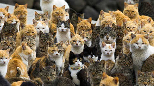 According to the Atlantic, Aoshima Island is one of a dozens habitats for great numbers of cats. Hundreds of cats live in abondoned wood cabins in the island, 6 times more than the quantity of human residents. [Photo/Sina]