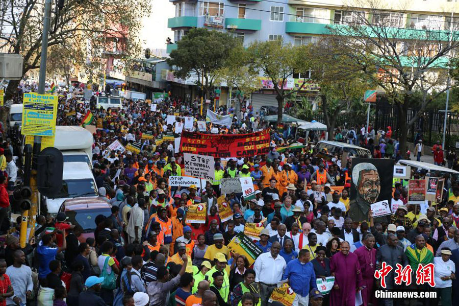 About 30,000 people protest against xenophobia on April 23, 2015, in South Africa's largest city of Johannesburg. [Photo: Chinanews.com]