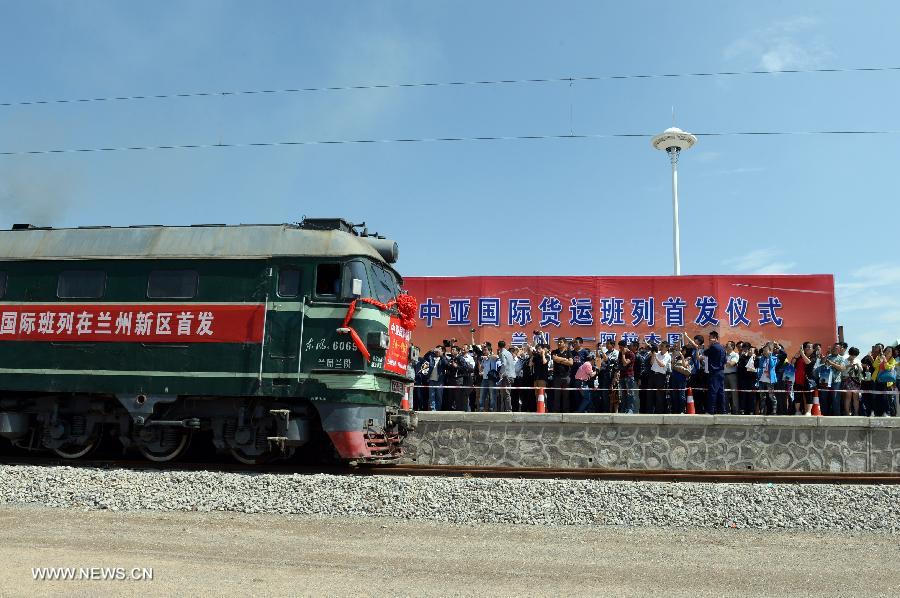 A freight train named Lanzhou, which will provide trade service between the northwestern China city of Lanzhou and Almaty in Kazakhstan, pulls out of the train station for its debut journey in Lanzhou, capital of northwest China's Gansu Province, July 5, 2015. A launching ceremony was held here on Sunday, marking the opening of a new trade route between China and central Asia.(Xinhua/Fan Peikun)