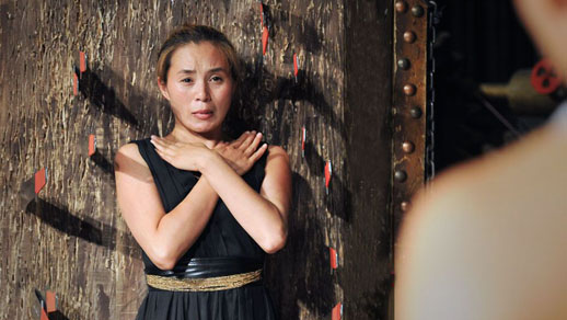 Wang Yong and Zhao Qian have been folk artists for more than 10 years. They learned acrobatics in a troupe from a very young age. Their “knives-throwing” performance is both thrilling and controversial.(Photo/CNS)