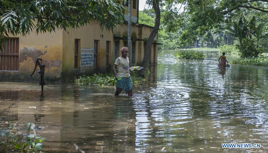 Indian people collect drinking water from a water merged tube at Beri Gopalpur village, some 200 km away from Kolkata, capital of eastern Indian state West Bengal, Aug. 4, 2015. At least 215 people died of wall collapses, electrocution, landslide and drowning brought by heavy rain and accompanying floods in India over the past week, Home Ministry officials said Tuesday. (Xinhua/Tumpa Mondal) |