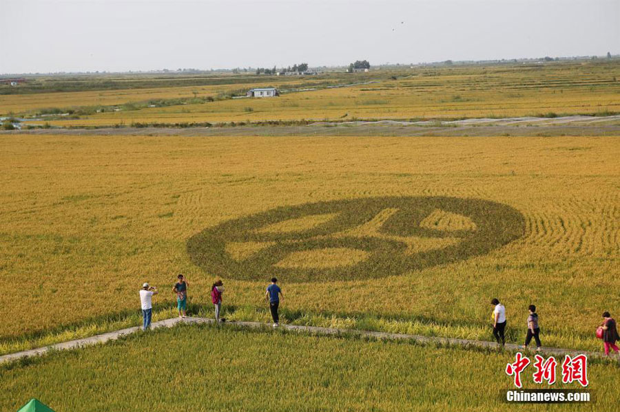 3D images are seen on a rice field in Panjin, Northeast China's Liaoning Province, on September 3, 2015. The images feature themes of Chinese legends and historical stories. [Chinanews.com]