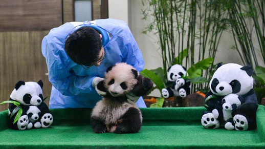 The giant panda cub is seen at the National Zoo in Kuala Lumpur, Malaysia, on Nov. 17, 2015. A giant panda from China Liang Liang gave birth to a cub in Malaysia on Aug. 18. (Xinhua/Chong Voon Chung)