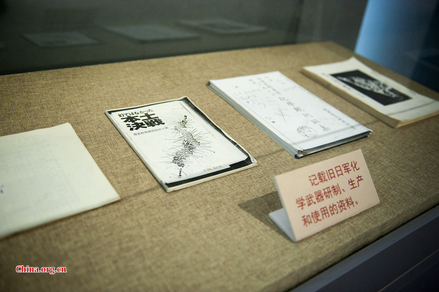 The Military Museum of the Chinese People's Revolution exhibits documents of the invading Japanese troops' research, production and use of chemical weapons. [Photo by Chen Boyuan / China.org.cn] |
