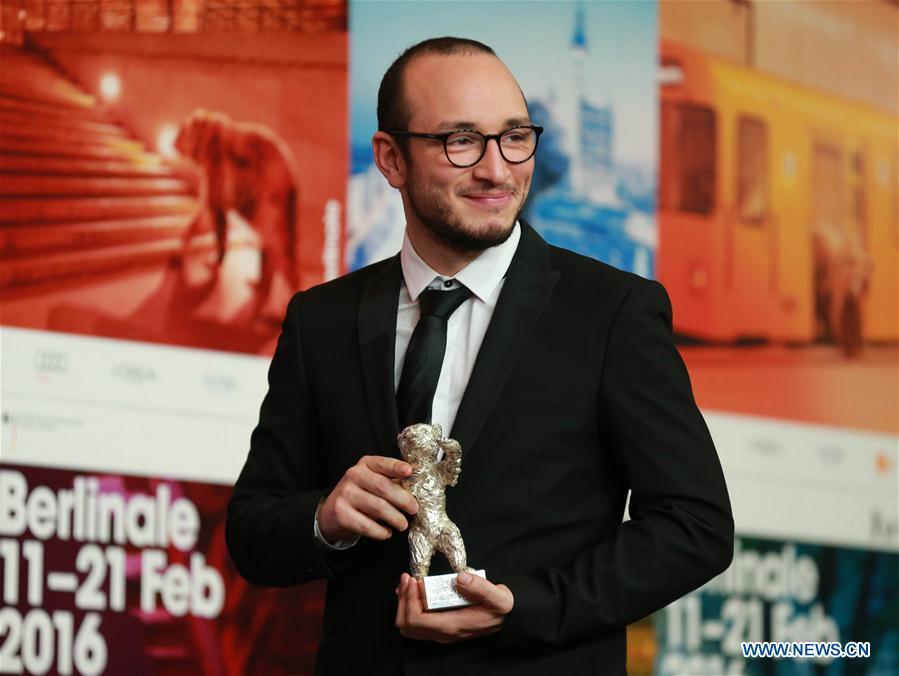 | Tunisian actor Majd Mastoura attends a press conference with his trophy of the Silver Bear for Best Actor for the film "Inhebbek Hedi (Hedi)" after the awards ceremony of the 66th Berlinale International Film Festival in Berlin, Germany, Feb. 20, 2016. [Xinhua] |