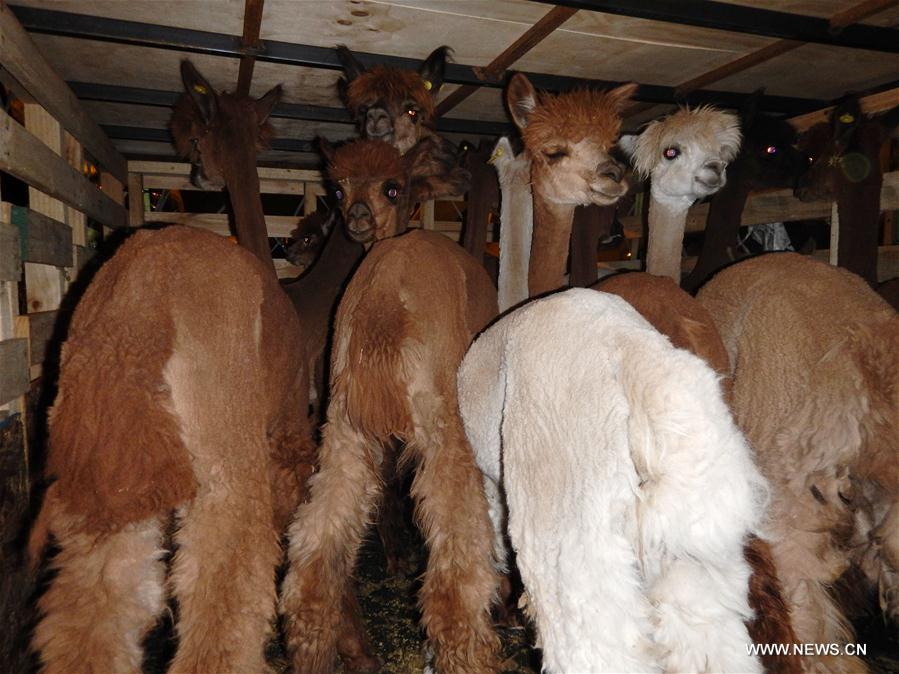 Alpacas are seen on a Boeing 747 cargo plane at Xinzheng International Airport in Zhengzhou, capital of central China's Henan Province, April 13, 2016. A total of 622 alpacas from Santiago, Chile, landed in Zhengzhou after 27 hours of flight. They will receive a 30-day quarantine before being bred and displayed as ornamental animals in the city. (Xinhua/Ma Yichong)