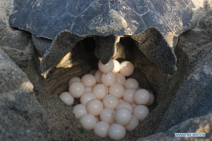 An olive ridley turtle is seen on the Ixtapilla Beach in the State of Michoacan, Mexico, on July 31, 2016. At the end of July, thousands of olive ridley turtles have crawled across the Pacific coast to spawn, mainly in the states of Michoacan and Oaxaca. (Xinhua/Armando Solis)