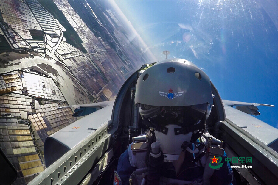 A female pilot with the Chinese air force flies the Chinese-made JH-7 fighter-bomber in northern China on August 26, 2016. The two-seat, twin-engine, all-weather JH-7 is also known as the FBC-1 Flying Leopard. [Photo: 81.cn] |