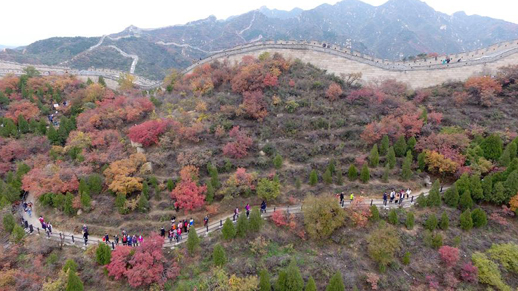 Visitors view the colorful leaves at the Badaling section of the Great Wall of China just north to Beijing, on Oct 23, 2016. [Photo/Xinhua]