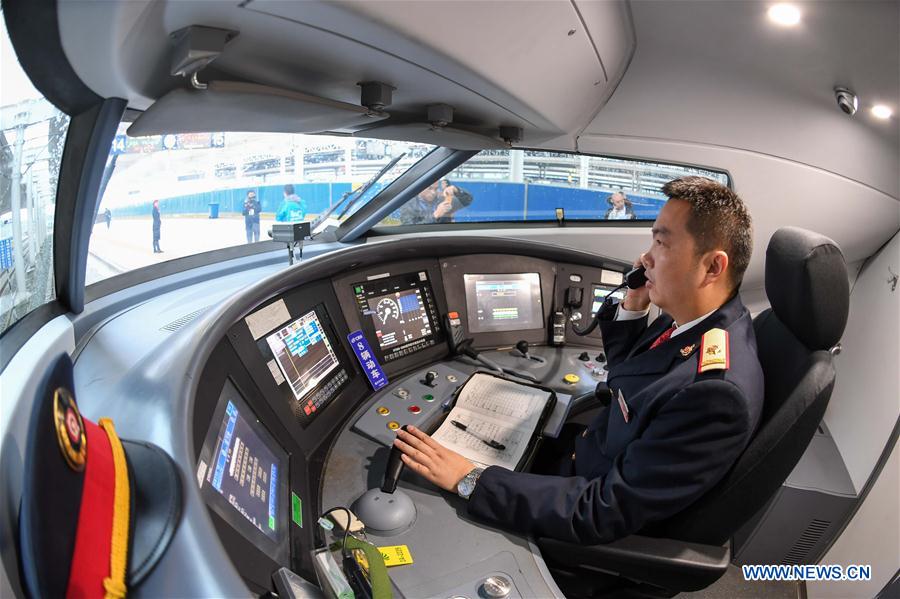 A driver makes preparation in the cab of the train No. 55503 in Chongqing, southwest China, Nov. 7, 2016. The Wanzhou-Chongqing section of Zhengzhou-Chongqing high-speed railway line started a simulation operation on Monday. The 247-kilometer-long section, designed with a speed of 250 km per hour, will be put into operation within this year. (Xinhua/Liu Chan)